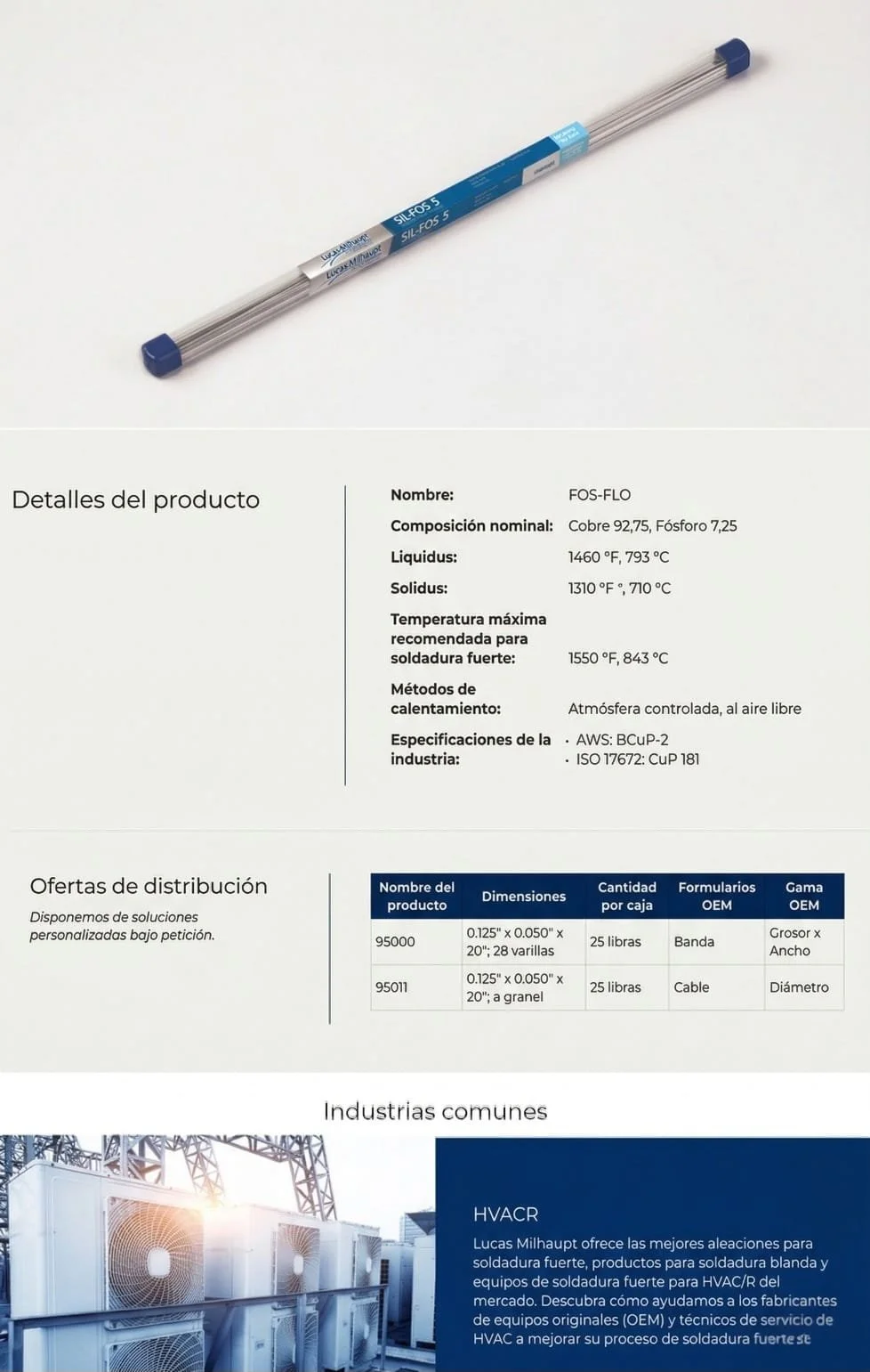 Ventajas: Excelente penetración capilar en juntas estrechas y gran rentabilidad al no contener plata.